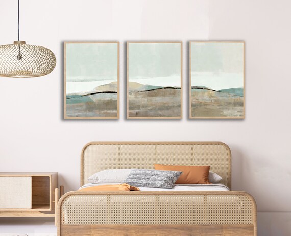 Large Beige Grey Abstract Landscape Set Of 3 Duck Egg Etsy Uk