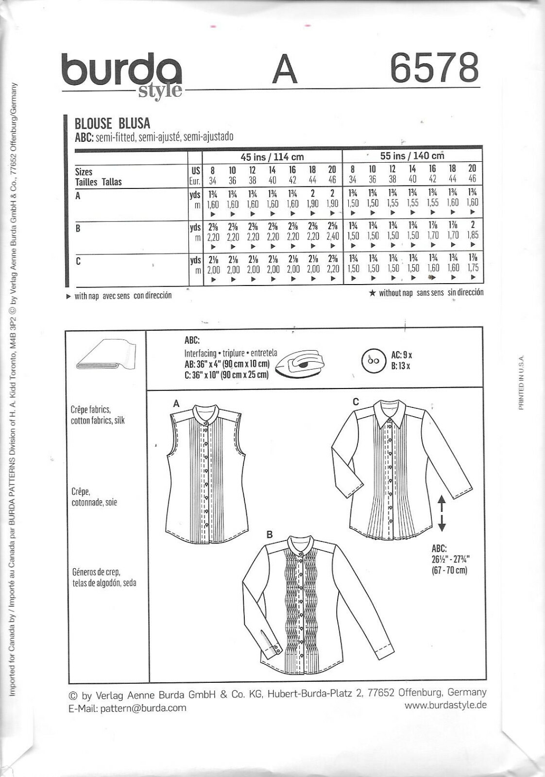 Uncut Burda Sewing Pattern 6578 Ladies 8 20 Pintuck Front Blouse Semi Fitted Ff Ebay